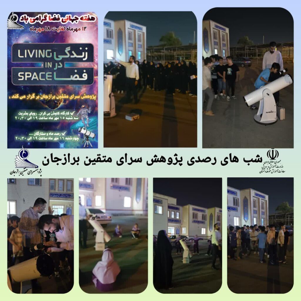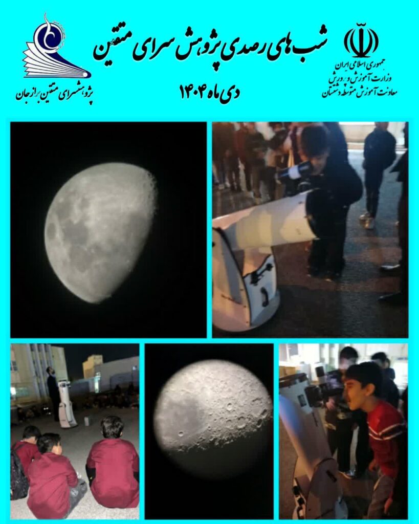 شب های رصدی به صورت ماهانه در پژوهش سرای متقین برای دانش آموزان تمام مقاطع تحصیلی برگزار می گردد . این رصد شامل کارگاه نجوم و رصد ماه و ستارگان و در صورت شرایط مناسب رصد برخی سیارات می شود .